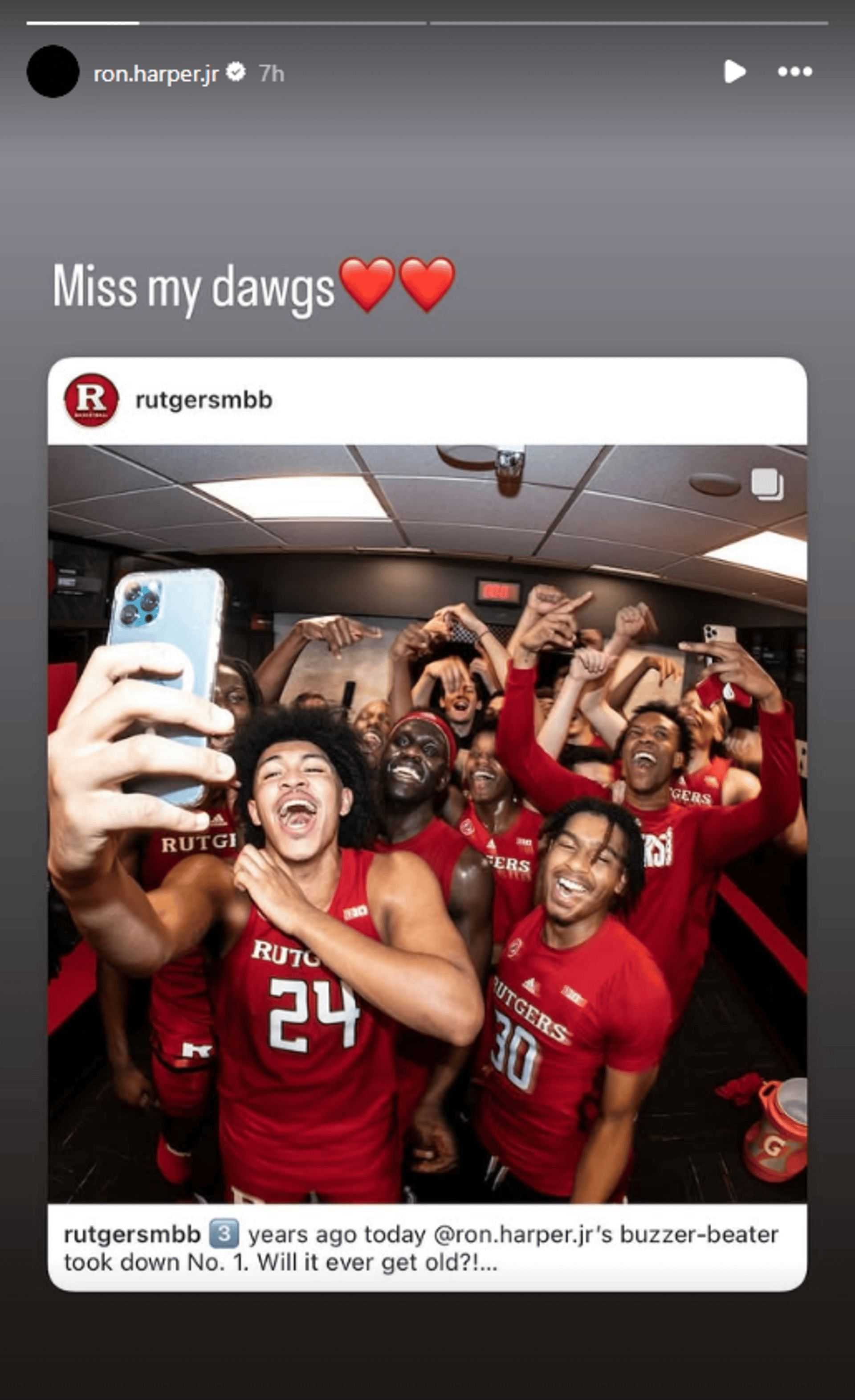 This moment took place on Dec. 9, 2021. Harper Jr. celebrated the anniversary on Instagram. The Rutgers Instagram page also paid tribute to the NBA legend's son with a post dedicated to the game-defining moment. Harper Jr. reposted it on his Instagram stories and left a heartwarming three words: