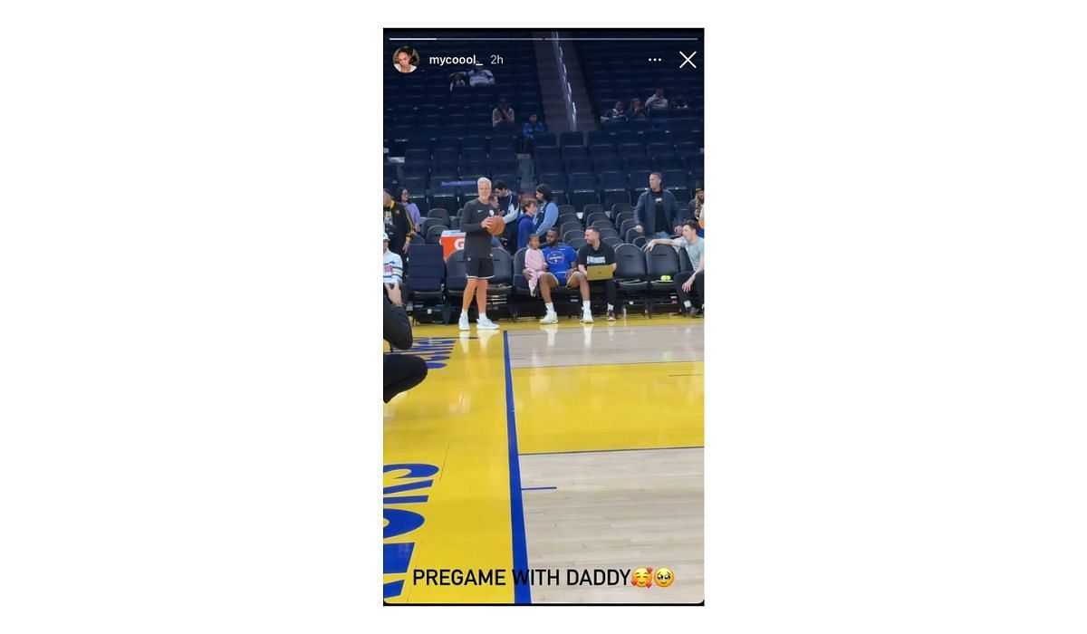 The clip was taken during a warmup session before the Golden State Warriors' clash with the Dallas Mavericks at the Chase Center. Mychal captioned the clip: