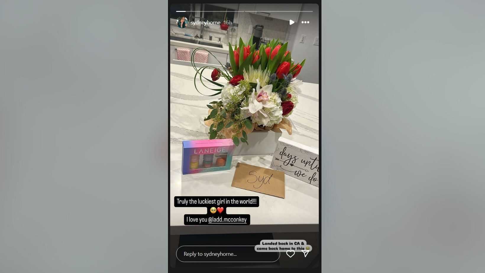 On Thursday, Horne shared an Instagram story featuring a picture that showed off the beautiful flowers she received from McConkey upon her homecoming to California.