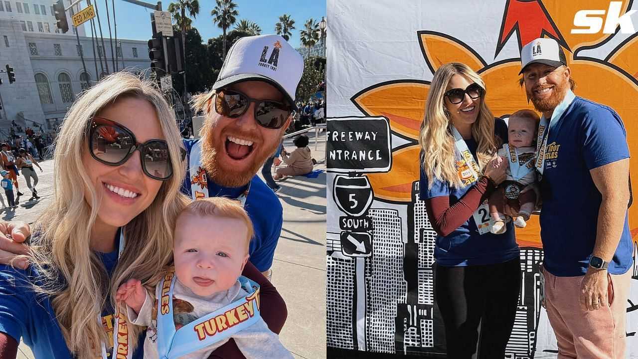 Corey Seager's wife Madisyn sends 4-word reaction to Justin Turner's son Bobo stealing spotlight from ex-Dodgers free agent and his wife Kourtney. Credit: Justin Turner/Instagram