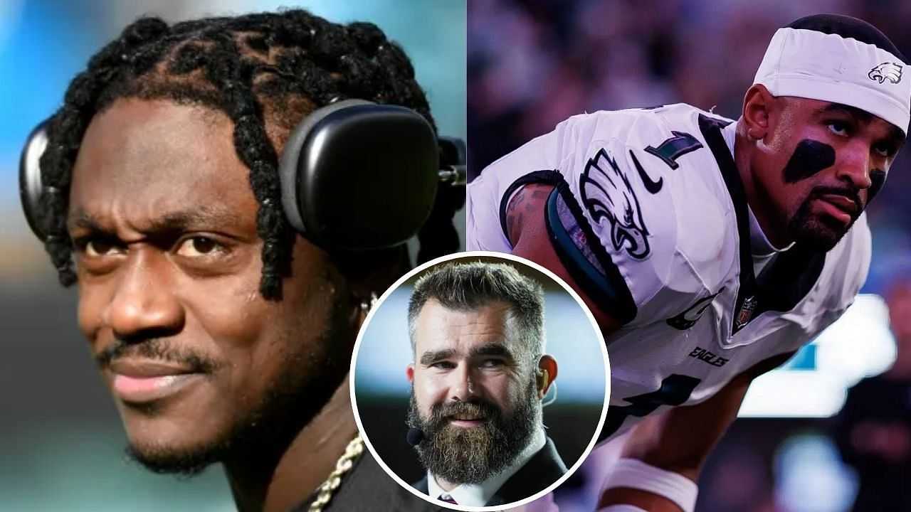 A.J. Brown, Jason Kelce (Source: Imagn) | Jalen Hurts (Image source: Imagn/Getty)