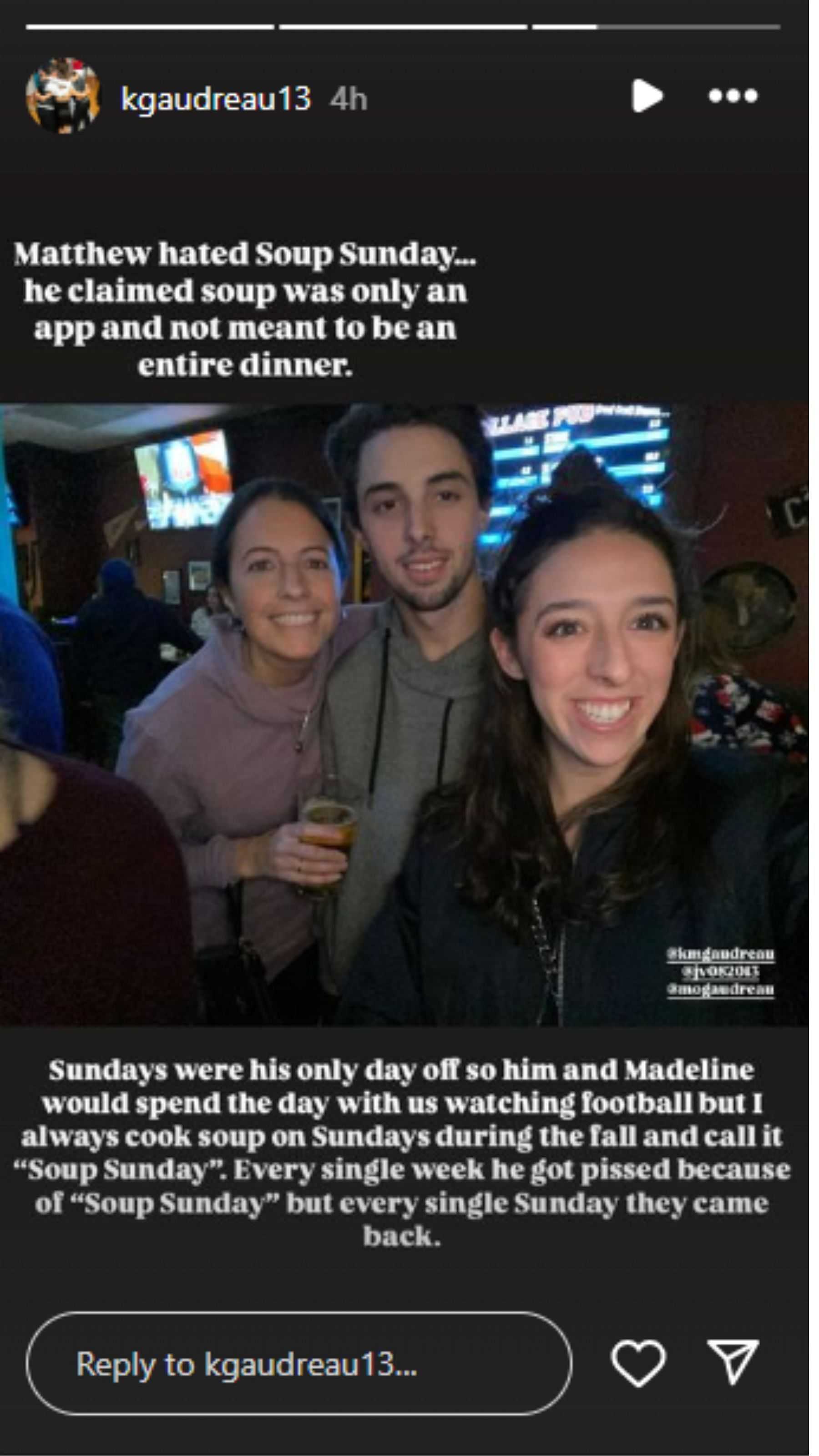 Every fall Sunday, the family would gather to watch football while Katie cooked soup for dinner. Matthew, however, wasn’t a fan of the tradition, insisting that soup was just an appetizer and not a proper meal. Despite his complaints, Matthew and his wife, Madeline, would show up every week.