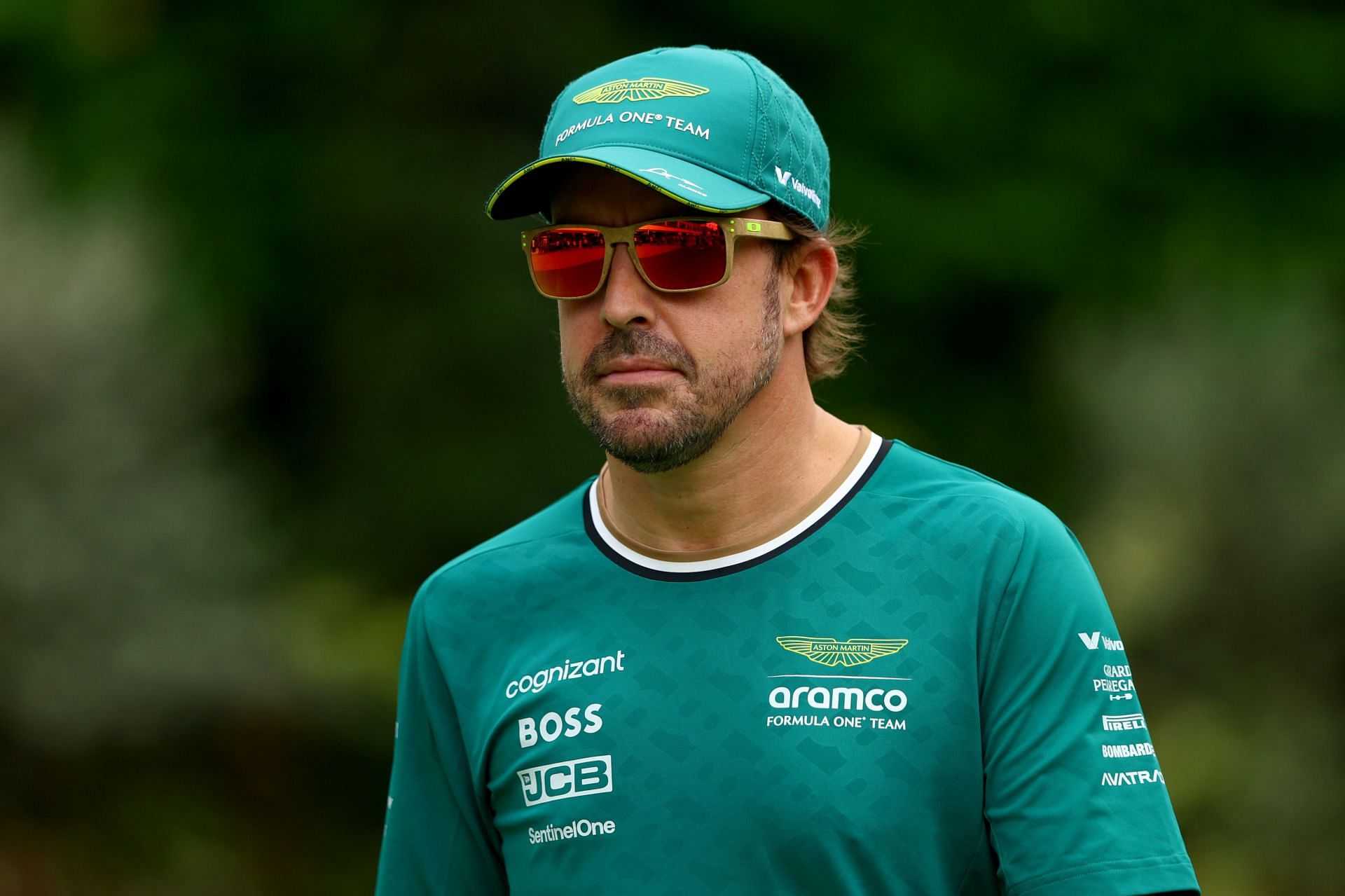 Fernando Alonso of Spain and Aston Martin F1 Team walks in the Paddock prior to practice- Source: Getty