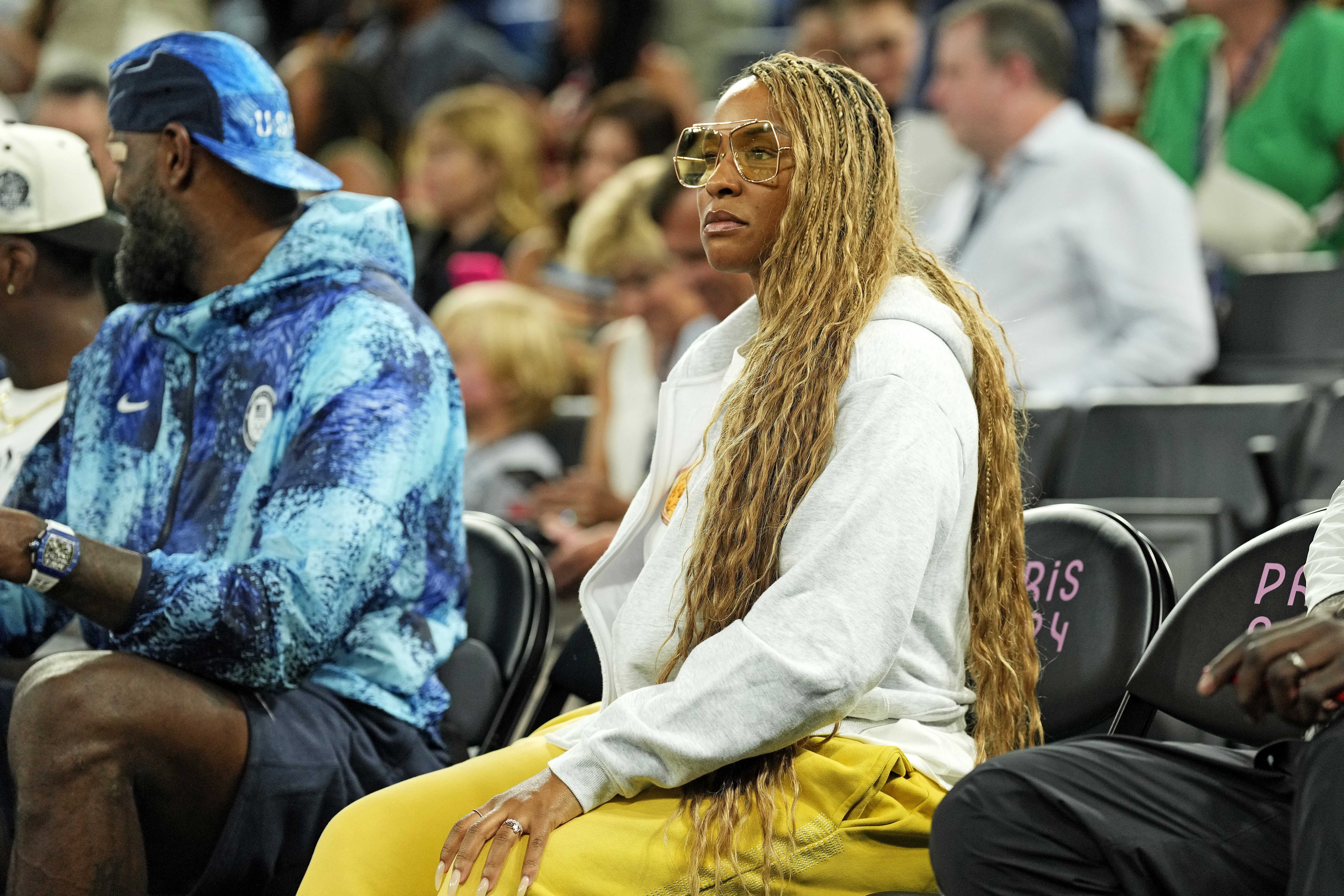 LeBron James' wife Savannah James styles $16,403 slouchy boots with $7,225 bag in all-black ensemble. (Image Source: Imagn)