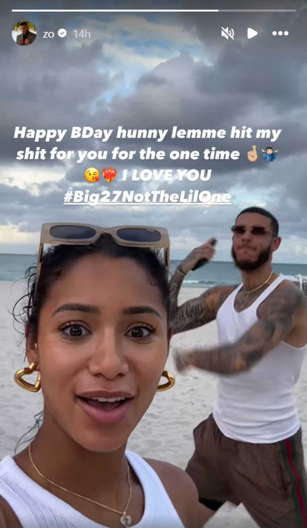 Lonzo breaks out moves as he wishes his girlfriend on her birthday (Image: @zo IG)