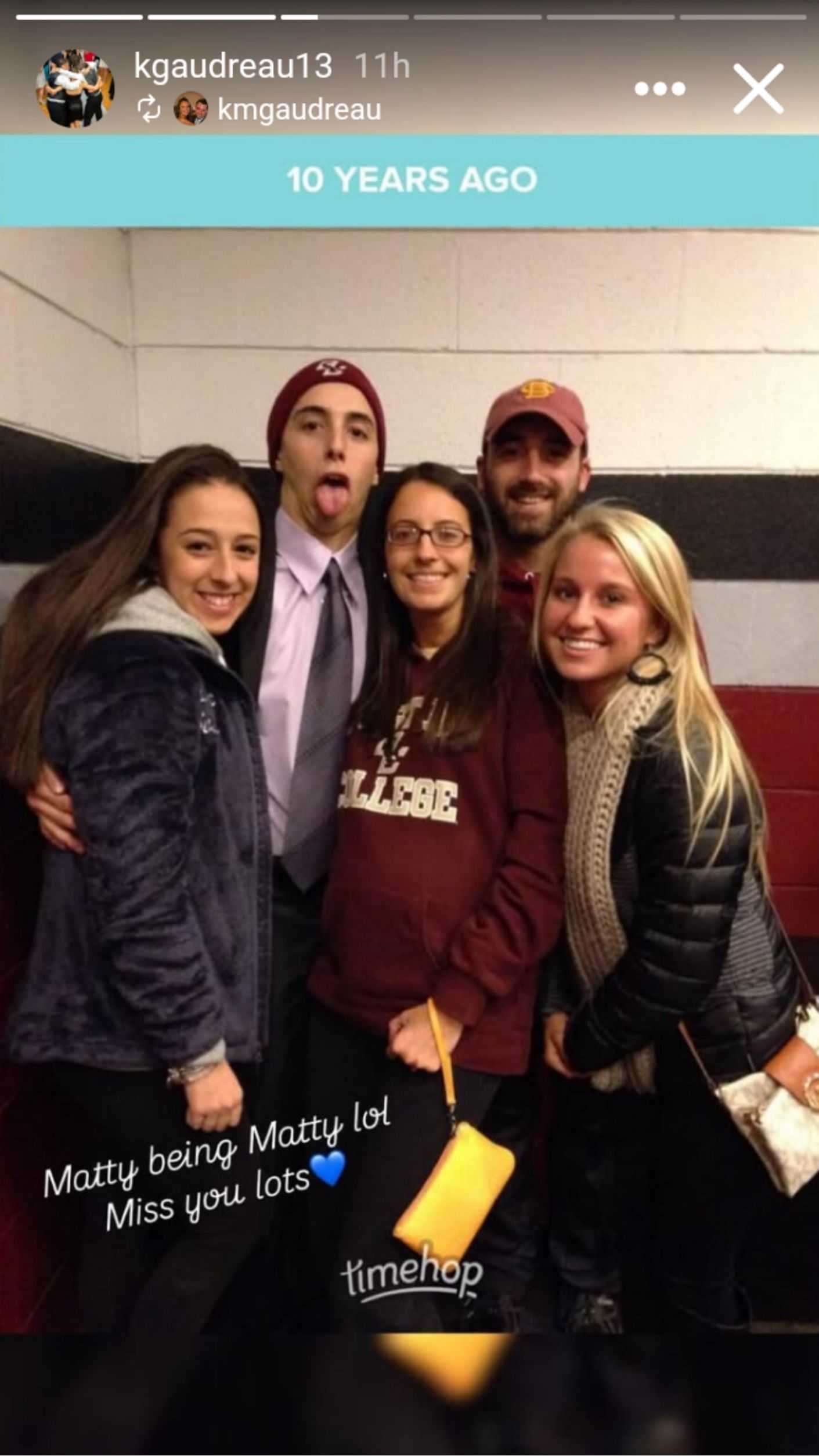 On Friday, Johnny Gaudreau’s sister Katie reposted a throwback picture from her elder sister Kristen’s Instagram stories. The group photo saw Matthew Gaudreau posing with his two sisters and a couple of friends.