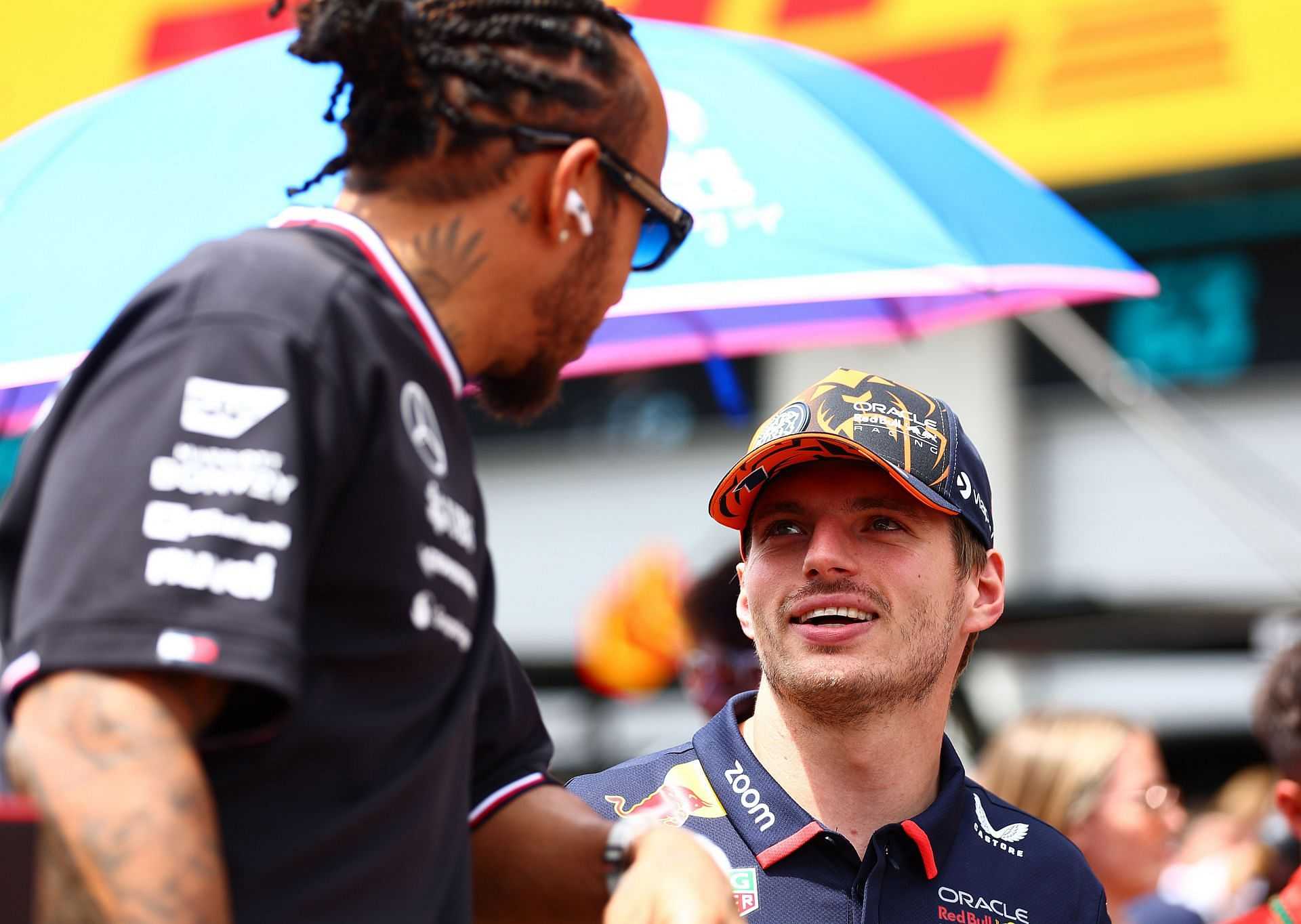 Max Verstappen [R] talking to Lewis Hamilton - Source: Getty