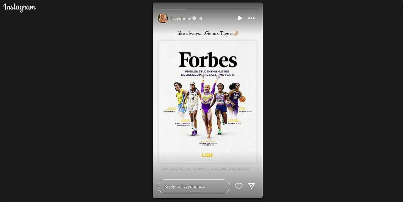 Olivia Dunne makes her feelings known about Forbes' recognition of the top 5 LSU student-athletes