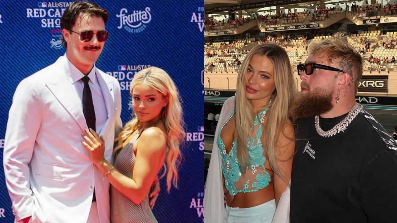 Paul Skenes and Olivia Dunne (L), Jake Paul and Jutta Leerdam (R) (Images from - Instagram.com/@livvydunne, Instagram.com/@juttaleerdam)
