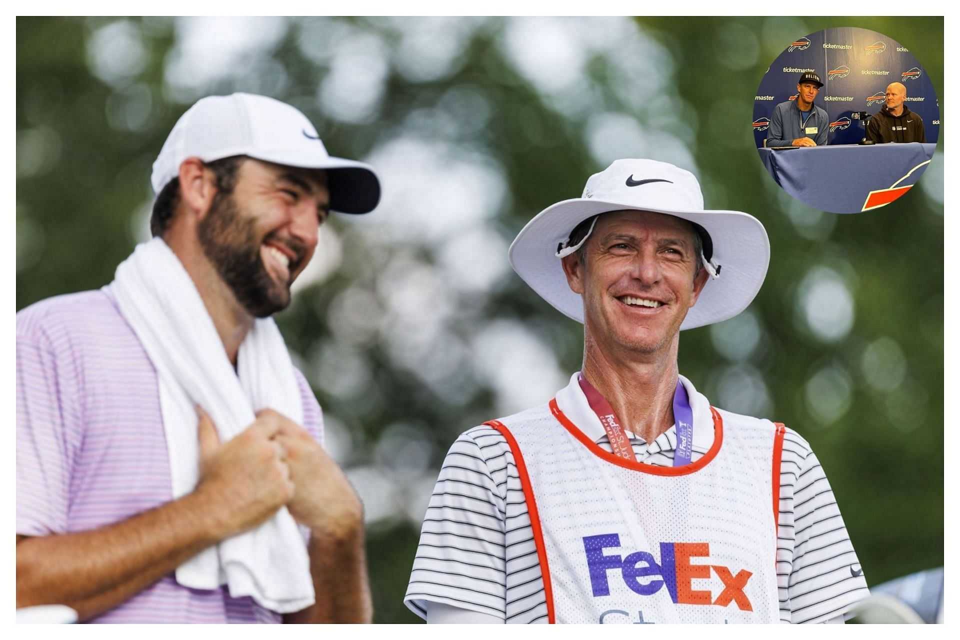 Scottie Scheffler's caddie Ted Scott catches up with Buffalo Bills (Images via Getty, X@agetzenberg)