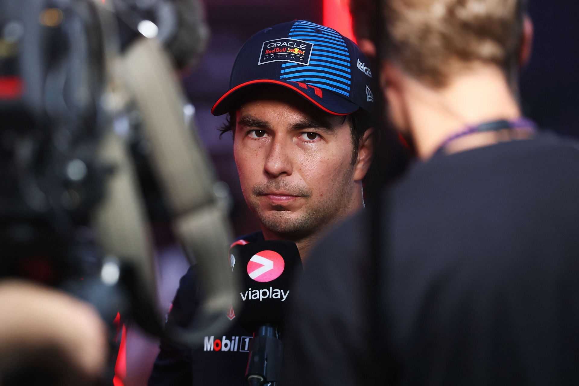 Sergio Perez of Mexico and Oracle Red Bull Racing talks to the media in the Paddock - Source: Getty