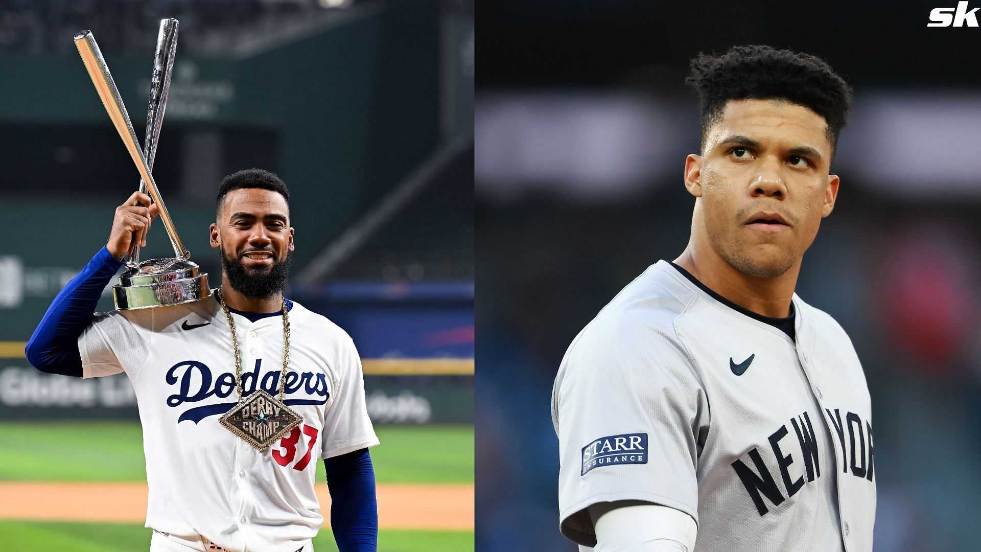Teoscar Hernandez of Los Angeles Dodgers poses after winning the T-Mobile Home Run Derby at Globe Life Field (Source: Getty)