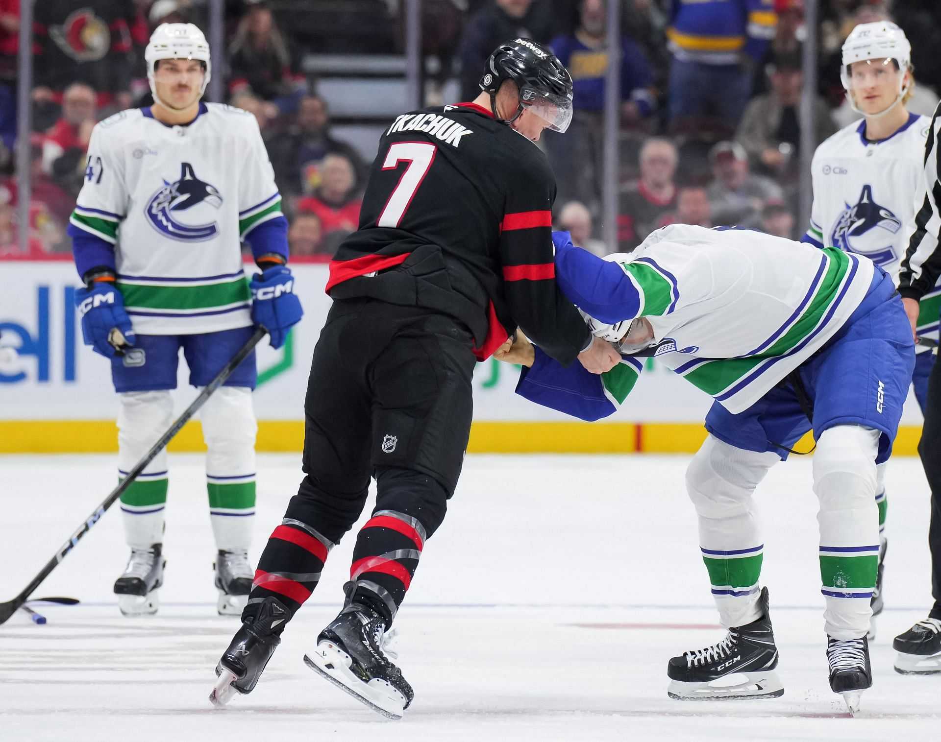 The game between the Vancouver Canucks and Ottawa Senators on Saturday night featured some intense fights in the third period. With just over six minutes left to play, Senators captain Brady Tkachuk and Canucks forward Dakota Joshua dropped the gloves and went at it.