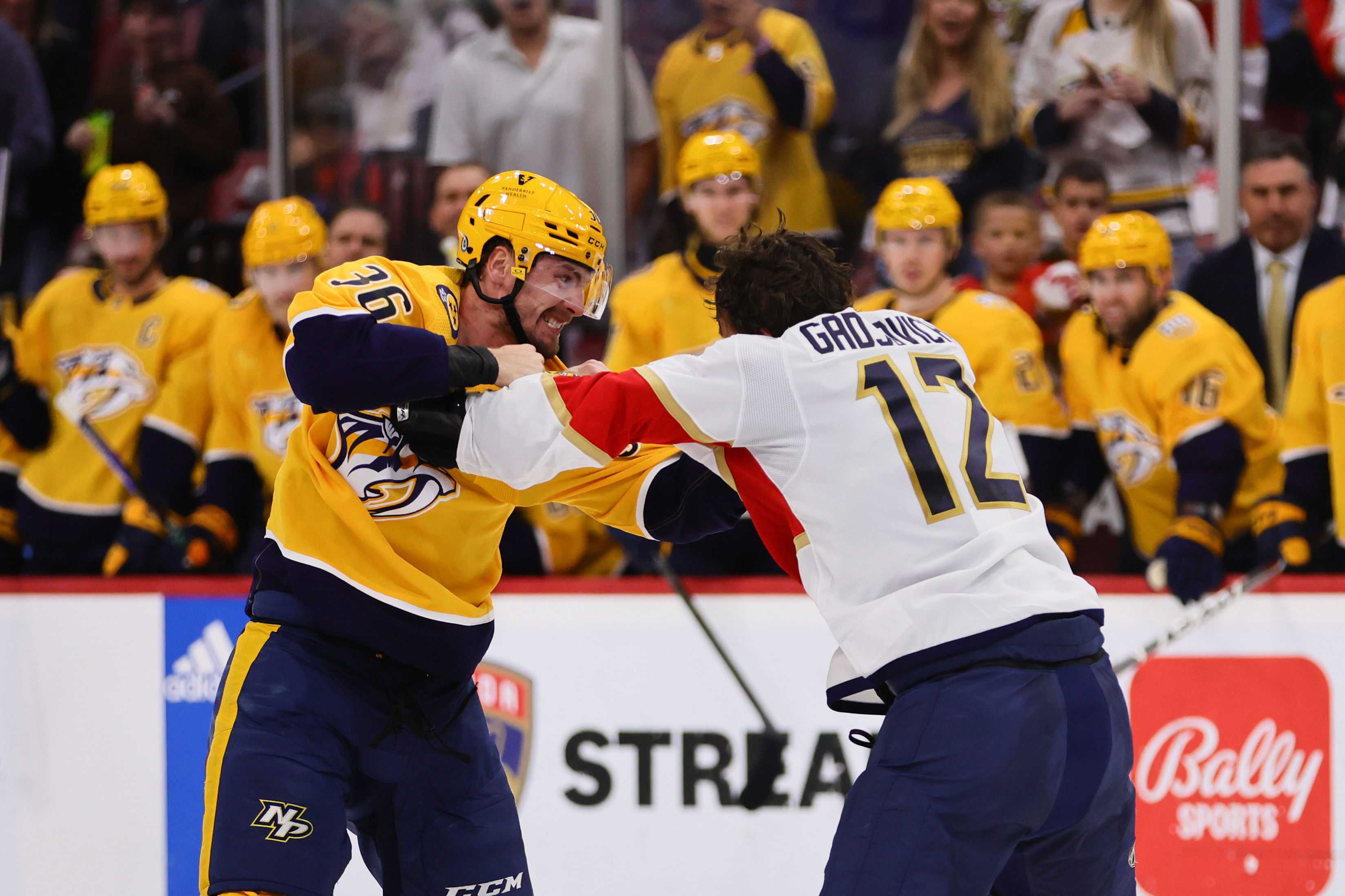 Florida Panthers enforcer Jonah Gadjovich and New Jersey Devils tough guy Brenden Dillon set off fireworks during the second period of the Panthers-Devils tilt on Tuesday night.