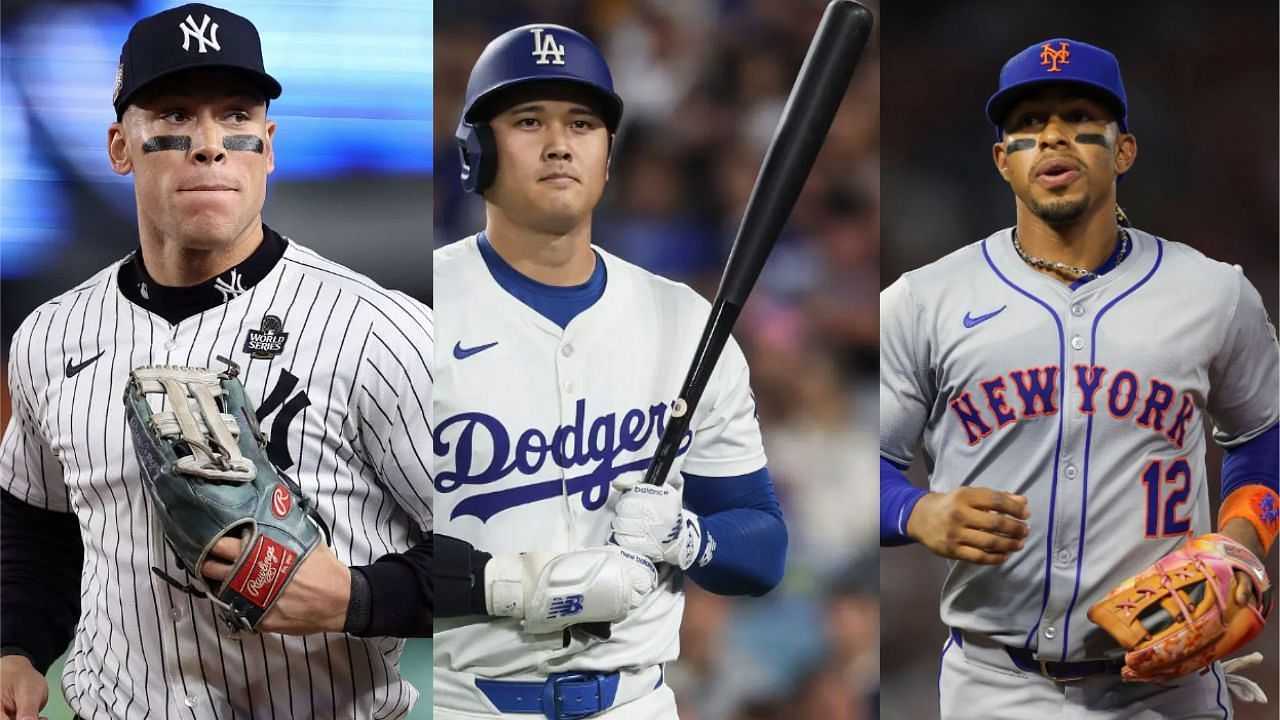 (Left to Right) Aaron Judge of the New York Yankees, Shohei Ohtani of the Los Angeles Dodgers and Francisco Lindor of the New York Mets (Images from - Getty)